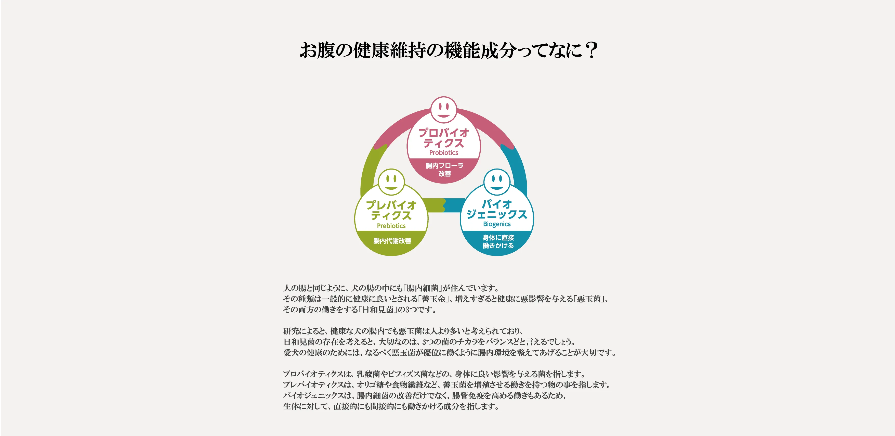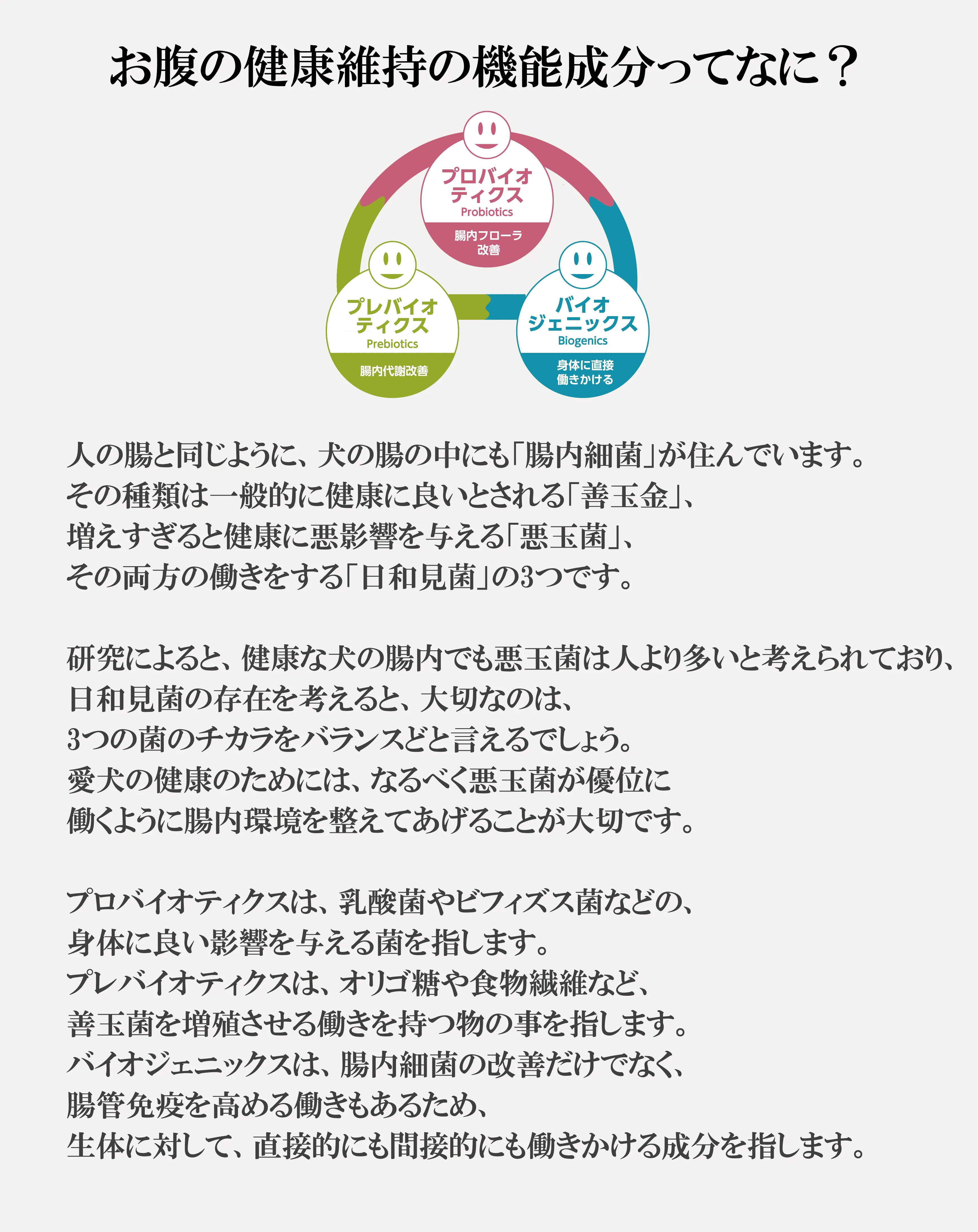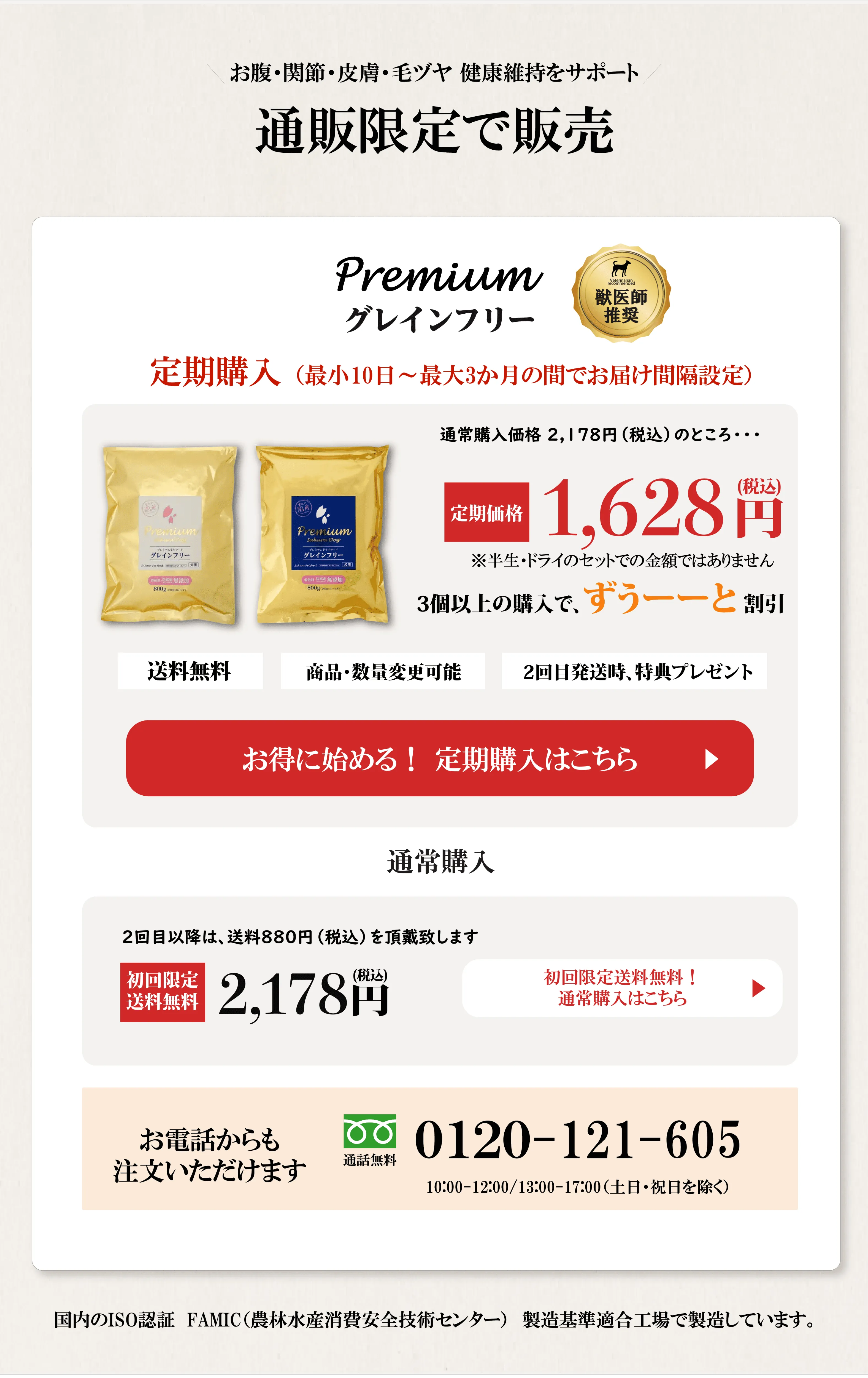 肉類(ビーフ(骨・皮・内臓を含まない)レバー、チキンレバーパウダー、チキンエキス)、でん粉類(馬鈴薯でん粉、タピオカでん粉)、 油脂類(牛脂、大豆油、なたね油、ひまわり油、亜麻仁油、サーモンオイル)、いも類(さつまいも粉末)、ビール酵母、粉末セルロース、 乳類(ミルクエキス)魚介類(フィッシュエキスパウダー)、グルコサミン、コンドロイチン、殺菌乳酸菌、酵母細胞壁、納豆菌、酪酸菌、 植物発酵油抽出物、ミネラル類(P、Ca、Na、k、Zn、Fe、Cu、l)、増粘安定剤(グリセリン)、ビタミン類(コリン、E、A、パントテン酸、 B12、D)アミノ酸(メチオニン) |
