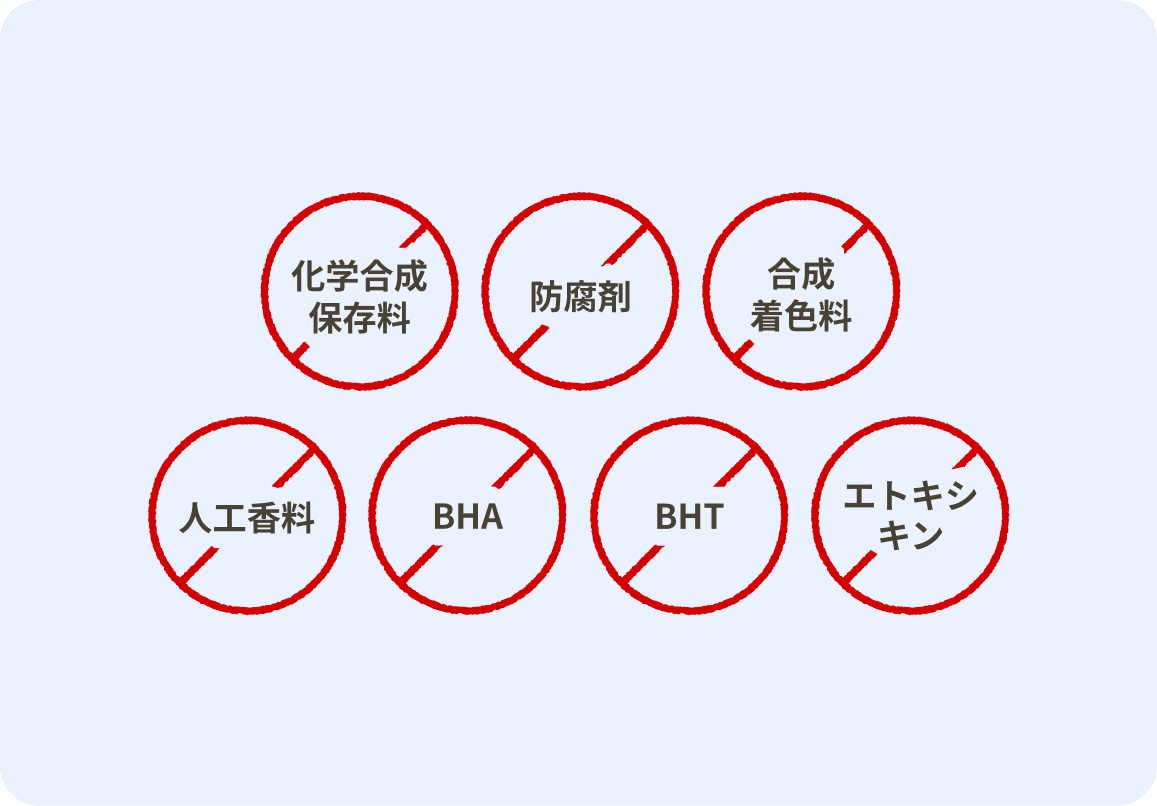 “本当に安心できるごはん”を届けるため、無添加への強いこだわりを持って製造しています。合成保存料・着色料・香料といった余計な添加物は一切使用せず、素材が持つ自然な香りや旨みをそのまま活かせるよう配合を工夫しています。