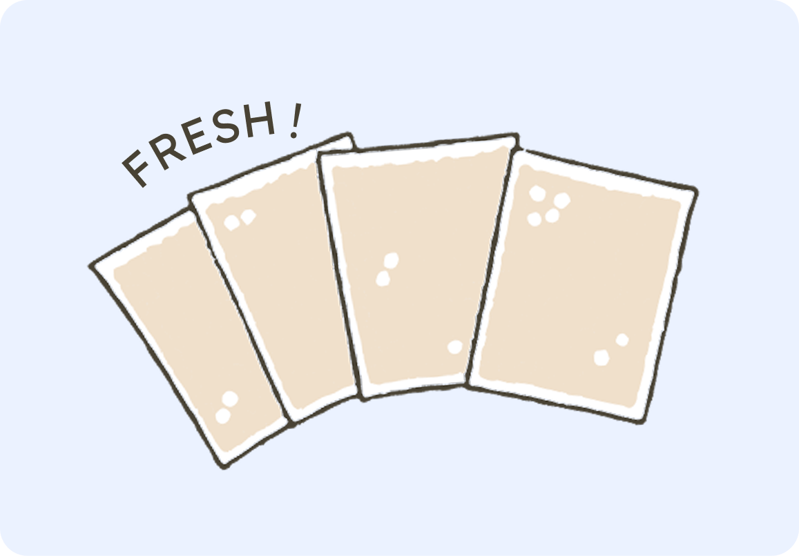 脱酸素剤入りの個包装で密封することで、自然な風味と香りをキープし、食いつきの良さを実現。完成後は、工場から直接出荷、つくりたての品質とおいしさを、そのままご家庭へお届けします。 -